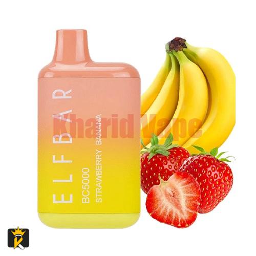 پاد یکبار مصرف توت فرنگی موز الف بار ELFBAR Strawberry Banana BC5000 دارای یک ترکیب میوه ای صاف از توت فرنگی و موز در هر پاف است. یادآور اسموتی موز توت فرنگی مورد علاقه شما.