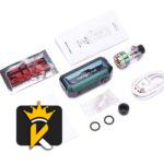 اگر بخواهیم این دستگاه را از نمای رو به رو برای شما توصیف کنیم باید بگوییم که شامل یک تصویر رنگی از داخل دستگاه و همچنین نام، ظرفیت مخزن و نام رنگ در نزدیکی قسمت پایین است. در زیر مود XP Pod Tank جعبه ای حاوی دفترچه راهنمای کاربر، تعدادی حلقه یدکی، نوک چکه یدکی، سیم پیچ دوم، کابل شارژ USB-C و تعدادی بسته باتری Digiflavor قرار دارد.